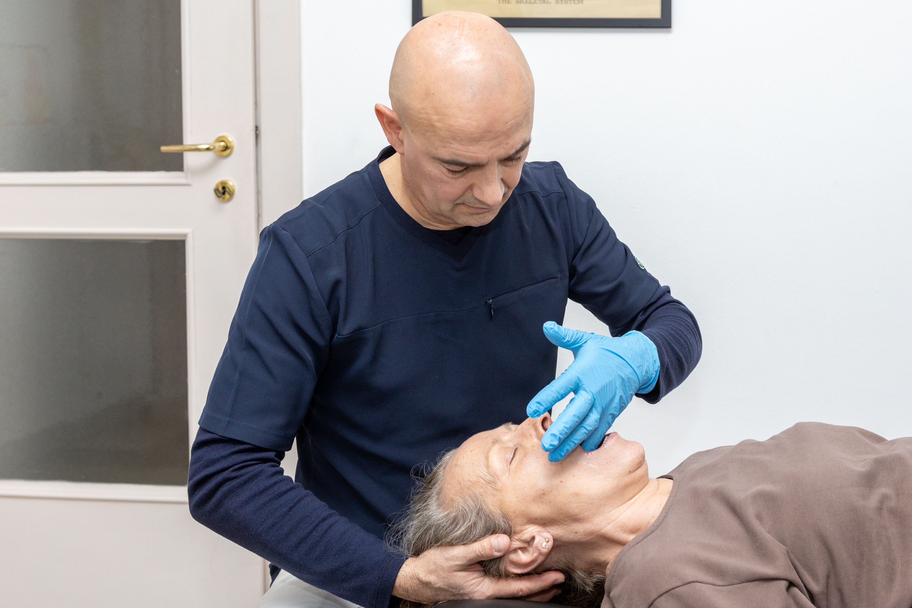 -terapia manuale che, attraverso varie tecniche di trattamento, risolve contratture della muscolatura masticatoria mimica e cervicale e disattiva eventuali zone grilletto o trigger points, che sono particolari disturbi della muscolatura che danno origine al dolore.