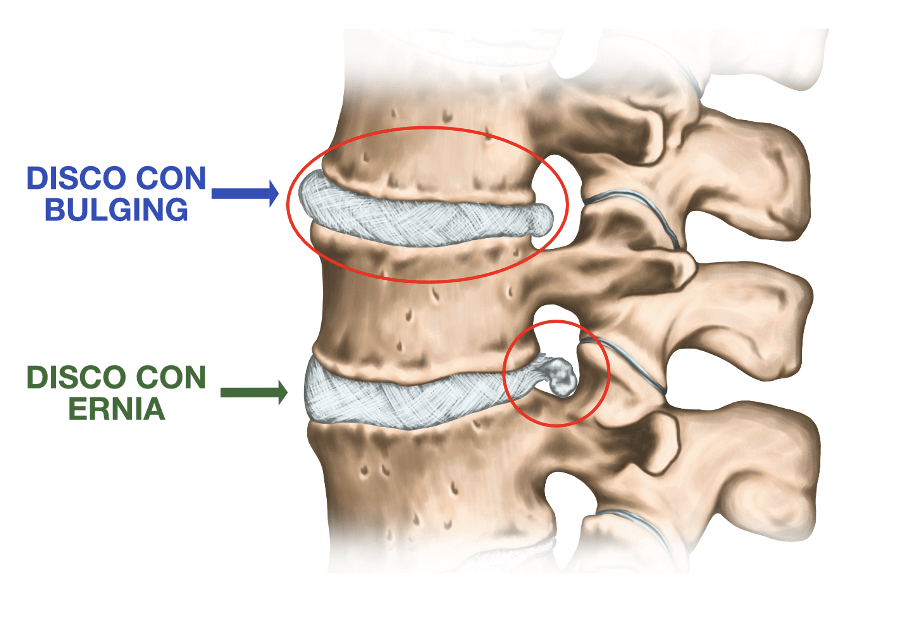 La protrusione discale (o bulging discale) è la fase immediatamente precedente alla rottura del disco vertebrale con fuoriuscita del suo contenuto, condizione nota come ernia del disco.